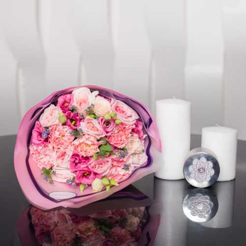 Главное преимущество этого букета заключается в его уникальном сочетании цветочных компонентов. Пионовидная роза Пинк Охара обладает крупными и нежными лепестками с завораживающим ароматом. Диантус розовый добавляет яркий акцент своей насыщенной окраской и текстурой. Эустома Розовая придаёт букету изящность своим маленькими цветочками. Кустовая роза Бомбастик Кремовая (нежно) создает неповторимый эффект, дополняя композицию своей благородной кремовой окраской. Лимониум розовый добавляет легкий воздушный акцент и подчеркивает особую красоту букета.