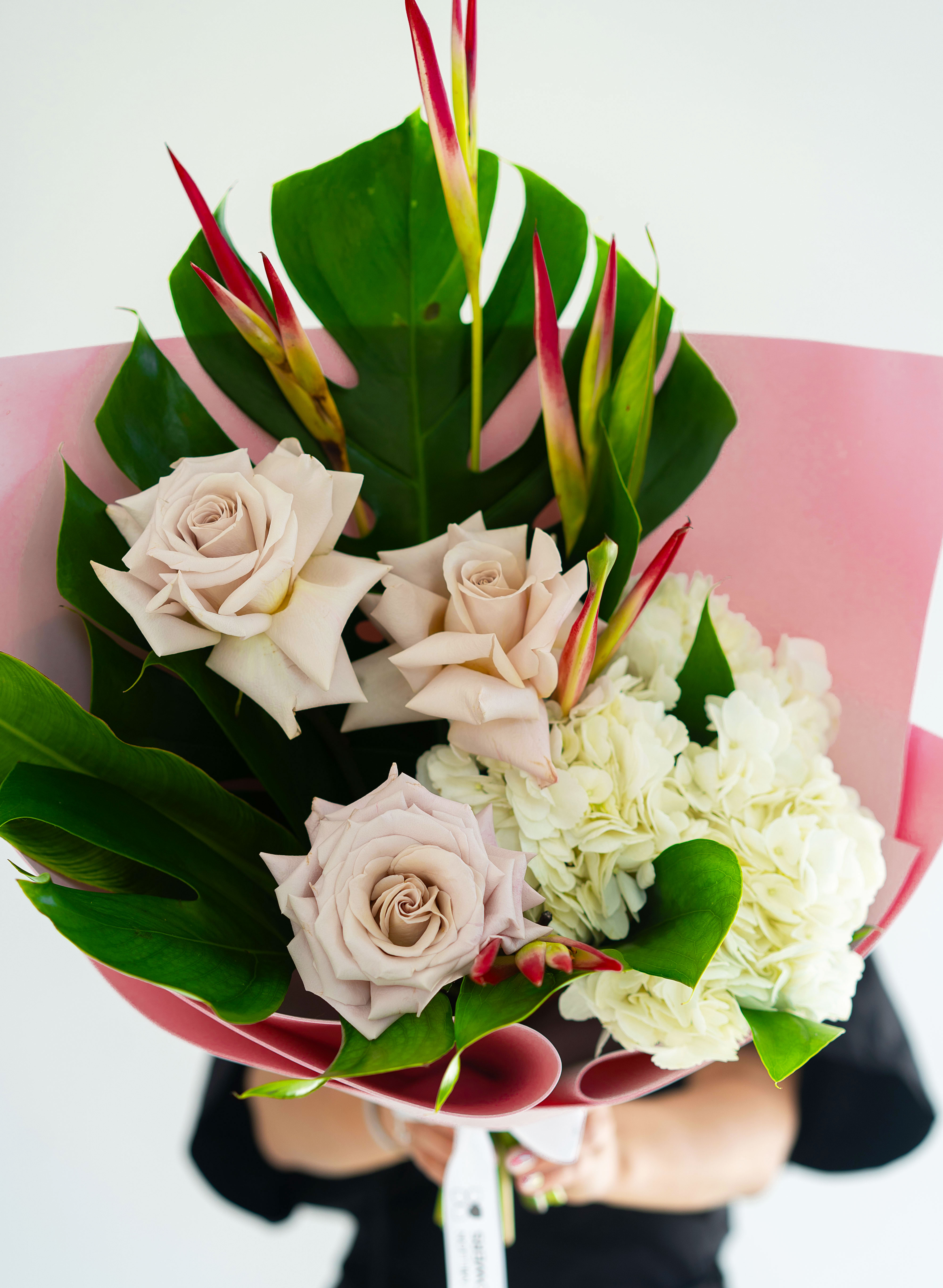 Букет "Монстерра Х Стер" — это смелое сочетание экзотики и утонченной классики. Эффектные листья монстеры придают композиции выразительность и объем, а нежные пионовидные розы "Мента" наполняют букет мягкостью и романтикой. Белоснежная гортензия добавляет воздушность, создавая ощущение легкости. Яркие стрелки стрелиции вносят динамику и энергетику, делая этот букет идеальным подарком для особого случая. "Монстерра Х Стер" – выбор для тех, кто ценит стиль, индивидуальность и изысканное сочетание форм и оттенков.