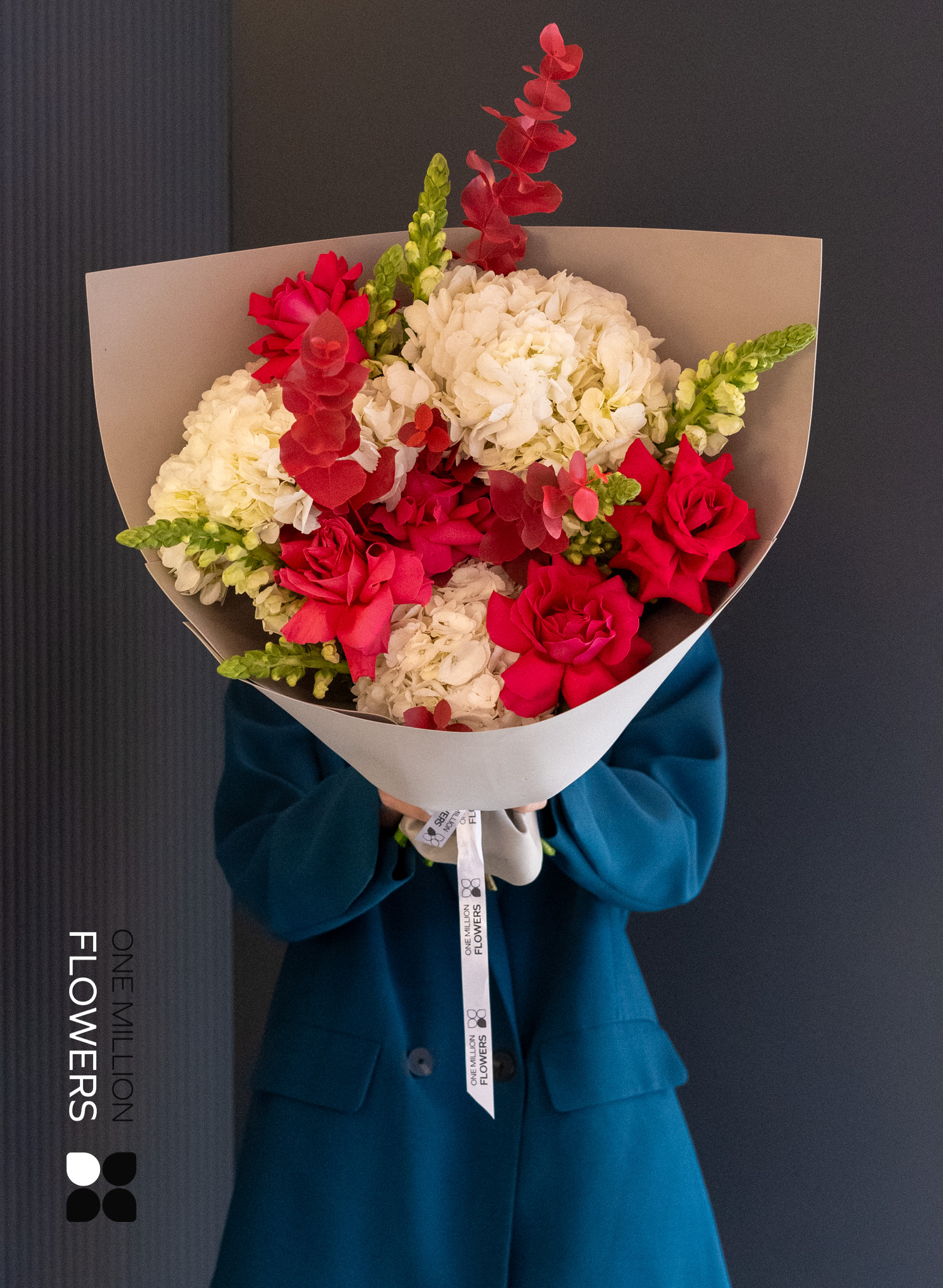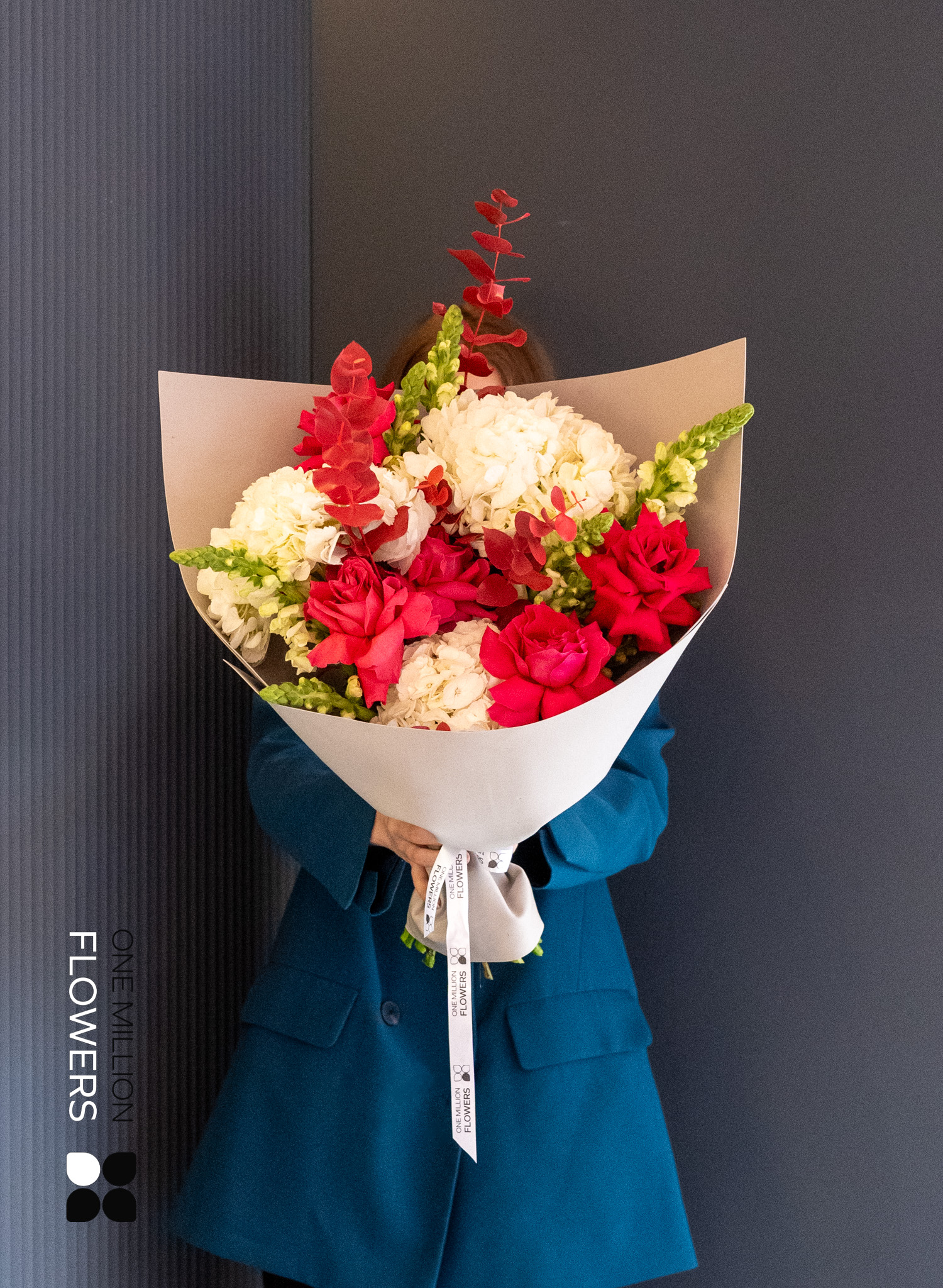 "Салун Пинк" Grey — это тонкий баланс между нежностью и сдержанным стилем. В составе: розовые кустовые розы, ранункулюсы, эустомы и сезонная зелень, обёрнутые в дизайнерскую бумагу серого цвета. Такой букет словно вырван из модной фотосессии: он минималистичен, элегантен и подчёркнуто современный. Оттенки розового будто подсвечиваются серым фоном, придавая композиции глубину и лёгкую драматичность.