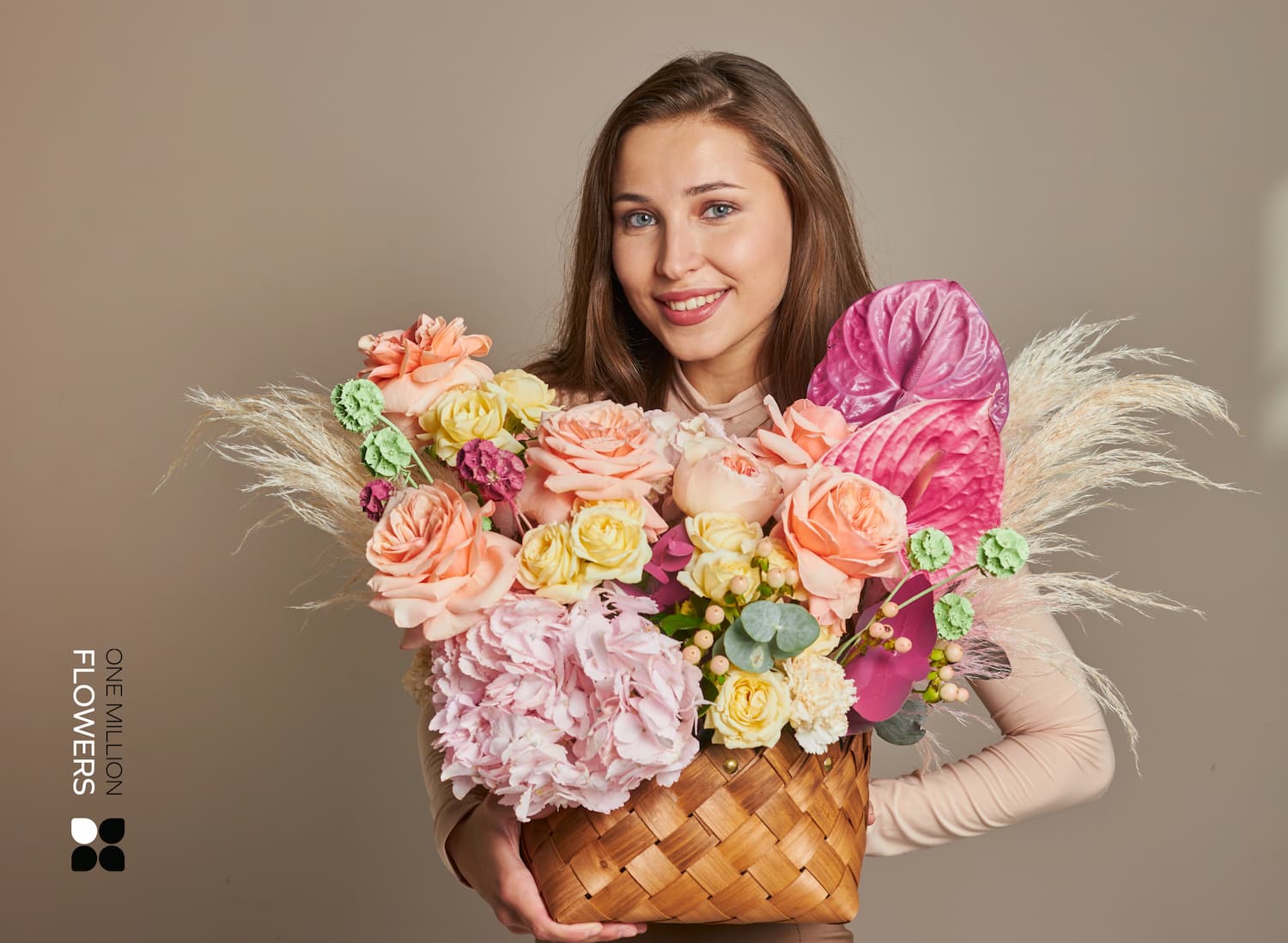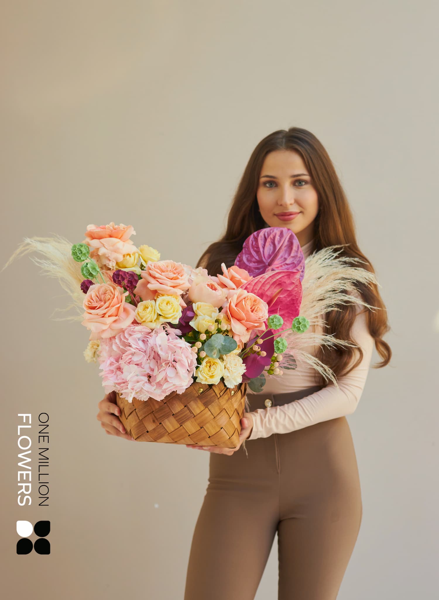 Оформить заказ легко: выберите корзину «Супримо» на сайте One Million Flowers, укажите адрес и желаемое время доставки. Мы предлагаем срочную доставку цветов по Москве — привезём даже в день заказа. Наша курьерская служба работает аккуратно и бережно, ведь каждая корзина — это маленькое произведение искусства.